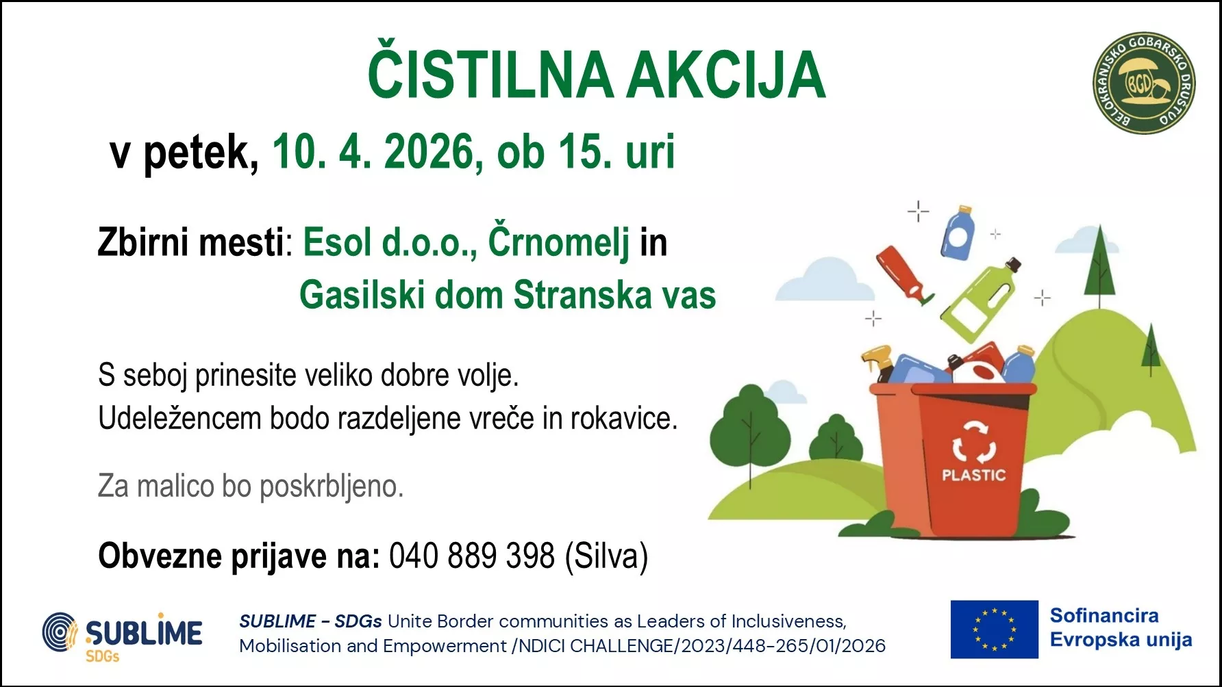 Vabljeni na čistilno akcijo, ki bo v petek, 10. aprila 2026, ob 15. uri.