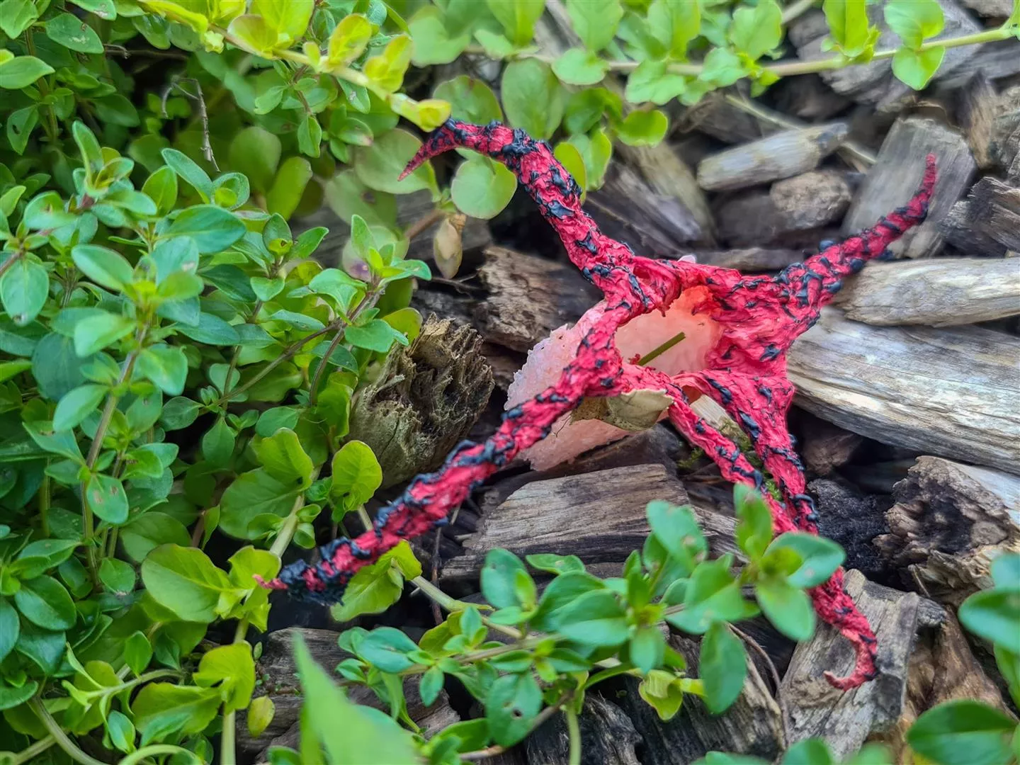 Med delom smo naleteli na lovkasto mrežnico (Clathrus archeri), invazivno in vpadljivo gobo, ki s svojim nenavadnim videzom vedno vzbudi pozornost. Po svetu se je razširila iz Avstralije.